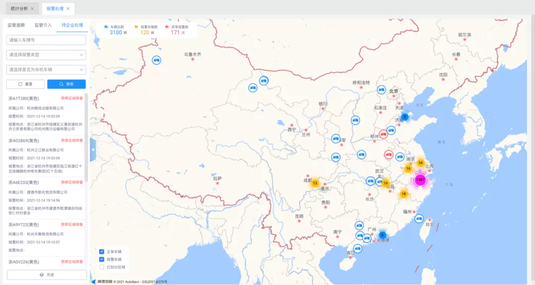 对车辆报警实现分级分类管理,首先转至企业内部进行处理,落实企业安全生产主体责任。对报警企业逾期未处理的情况进行监管介入,落实管理部门行业监管责任。